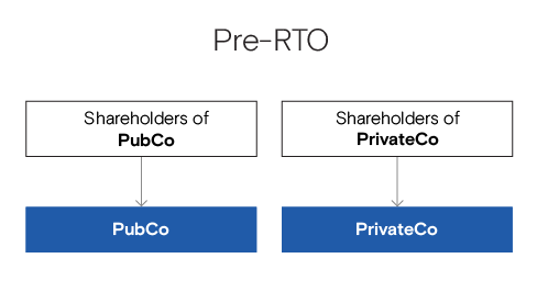 An RTO is a transaction pursuant to which a company listed on a stock exchange ("PubCo") with few or no assets, acquires all the shares of a private company with assets or substantial operations ("PrivateCo"). This acquisition will be made by issuing shares from the capital of PubCo to the shareholders of PrivateCo in exchange for the share capital they hold in PrivateCo, taking into account an exchange ratio based on the value of PrivateCo's assets or operations. Such a transaction will most often take place by way of share exchange, merger or arrangement, depending on the most appropriate tax structure for the proposed transaction.