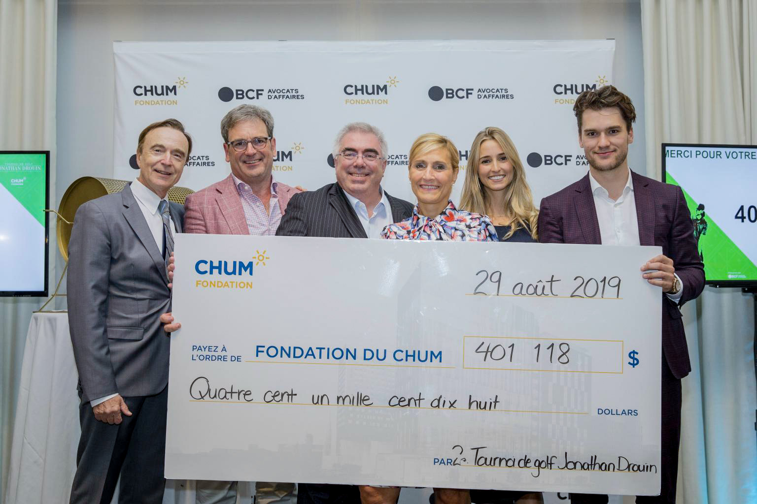 La 2e édition du Tournoi de golf Jonathan Drouin présenté par BCF Avocats d’affaires au profit de la Fondation du Centre hospitalier de l’Université de Montréal (CHUM), a eu lieu le 29 août dernier au prestigieux Club de golf Laval-sur-le-Lac. Grâce aux généreux participants et donateurs, un montant de 401 118 $ a été amassé afin d’offrir de meilleurs soins de santé aux patients.